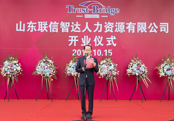 2016年10月15日上午8:30,由威海聯(lián)橋集團(tuán)與日本株式會(huì)社Trust-Tech共同出資成立的山東省首家中外合資人力資源公司—山東聯(lián)信智達(dá)人力資源有限公司開業(yè)儀式隆重舉行。人社部勞動(dòng)爭(zhēng)議研究室主任李天國(guó)、威海市人社局局長(zhǎng)王子明、威海市商務(wù)局副局長(zhǎng)劉秀景,高區(qū)黨工委副書記、管委常務(wù)副主任喬軍,聯(lián)橋集團(tuán)董事長(zhǎng)慕镕鍵、日本株式會(huì)社Trust-Tech社長(zhǎng)西田穰等領(lǐng)導(dǎo)以及聯(lián)橋集團(tuán)員工、事業(yè)合作伙伴、媒體記者等共計(jì)200余人參加了開業(yè)儀式。山東聯(lián)信智達(dá)人力資源有限公司總經(jīng)理梁瀟尹主持開業(yè)儀式。
