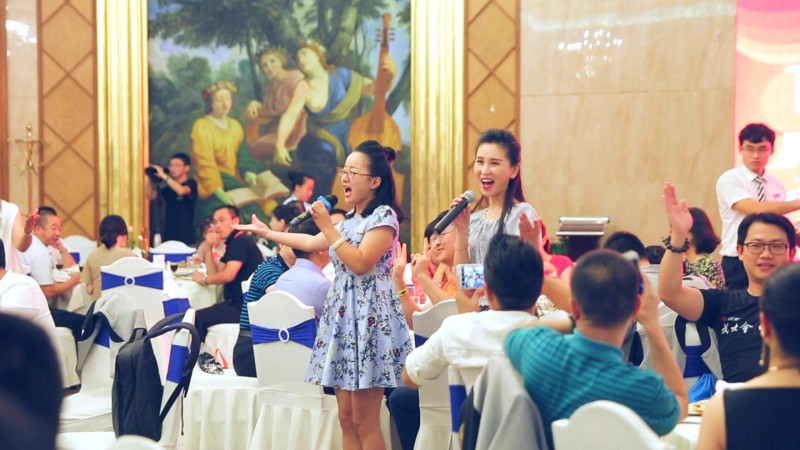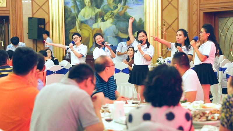 如果說(shuō)下午的座談讓大家受益匪淺,那么晚上的接待晚宴,則讓所有學(xué)員感到興奮不已和深深震撼。在慕衛(wèi)波董事幽默風(fēng)趣的祝酒詞后,在杯盞交換暖意融融的席間,隨著悠揚(yáng)的音樂(lè)響起,深情的《老同學(xué)》歌聲從身邊飄來(lái),拉開(kāi)了由聯(lián)橋藍(lán)色暢想合唱團(tuán)快閃表演的帷幕?!锻辍?、《哎呦媽媽》、《朋友》等經(jīng)典歌曲,帶給現(xiàn)場(chǎng)學(xué)員一次又一次的驚喜,《我的太陽(yáng)》則將整場(chǎng)晚宴推向了高潮。
