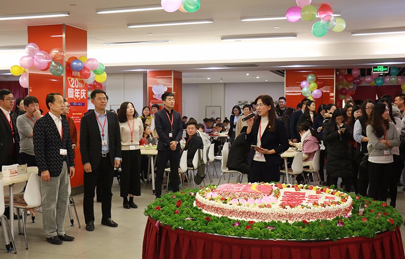在此起彼伏的祝福聲中,公司領導共同切開美味蛋糕,并親自送到員工手中,一起分享20周年的喜悅、興奮與自豪。