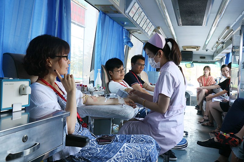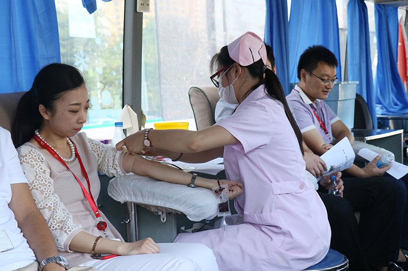 上午9點半,獻血活動正式開始。雖然工作繁忙,但是大家仍然熱情高漲,積極參與到無償獻血活動中來,認真填表、體檢、化驗直至成功登上采血車,車內(nèi)愛心涌動,涓涓熱血匯入袋中。