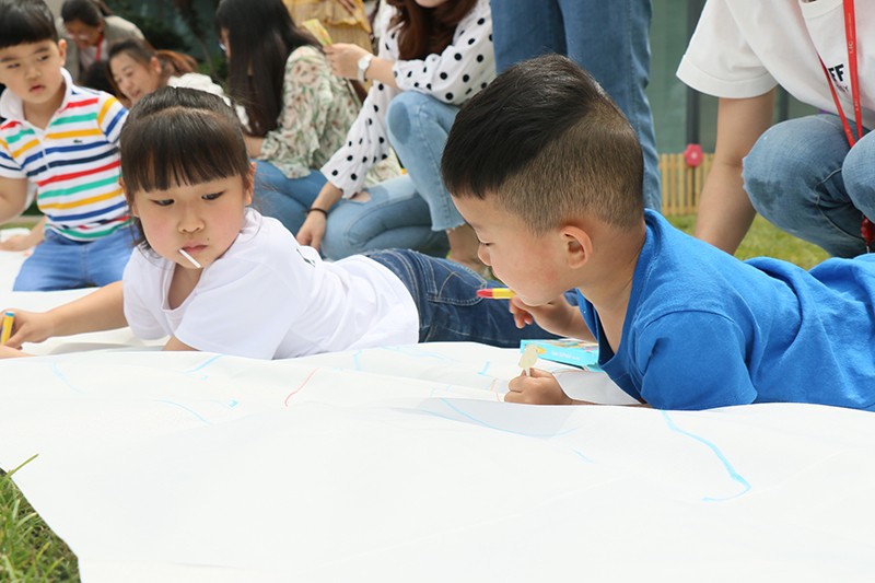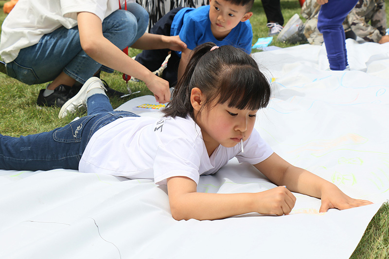 考驗美術(shù)天賦的時候到啦!孩子們躺在畫布上,爸媽拿起畫筆,認真描繪著孩子的模樣。你看,五顏六色的畫筆,畫出了一個多姿多彩的童年。