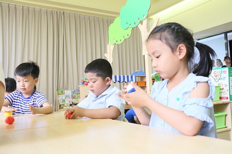 隨后,兩名老師帶領(lǐng)孩子們進行了體驗課。在老師的示范引領(lǐng)下,孩子們手中的橡皮泥,變成了一個個可愛的卡通形象。室內(nèi)孩子們玩得不亦樂乎,室外是家長們溢滿幸福的笑臉。