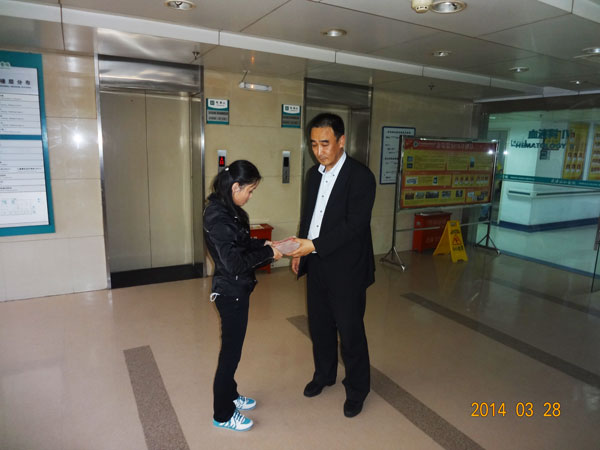 2014年3月8日,集團(tuán)公司副總經(jīng)理于福杰帶著聯(lián)橋 人的無限愛心,專程趕往湖北,來到吳小歡接受治療的武漢協(xié)和醫(yī)院,親切看望慰問吳小歡,并將第一筆捐助款6萬余元送到了吳小歡家人手中,繼續(xù)接受醫(yī)院化療,此時病情相對穩(wěn)定。