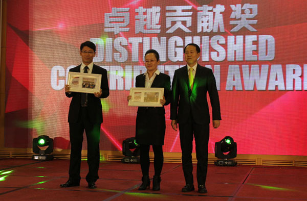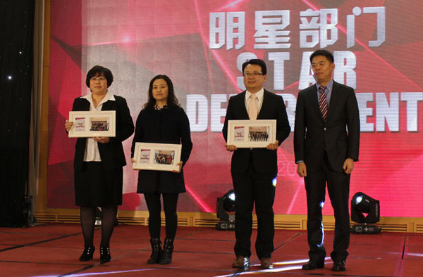 年會最莊嚴隆重的頒獎環(huán)節(jié),在激昂奮進的頒獎盛典預(yù)告片中拉開序幕。伴隨著氣勢磅礴、雄壯渾厚的音樂,鏗鏘有力、抑揚頓挫的頒獎詞,獲得“卓越貢獻獎”的進口部、紡織二部,“明星部門”的紡織六部、紡織十九部、日本業(yè)務(wù)二部,“先進部門”的紡織三部、日本業(yè)務(wù)三部、紡織九部、紡織十一、連心橋、紡織八部,“市場開拓獎”的美國市場部,“工業(yè)發(fā)展獎”的新材料科技公司,各獲獎單位代表和“項目引進貢獻獎”的李哲濱同志,站在了聯(lián)橋最高的領(lǐng)獎臺上,接受領(lǐng)導(dǎo)和同事們的祝福與喝彩,尊享屬于他們的榮耀和驕傲。孫曙光等63名先進個人也依次上臺領(lǐng)獎。這是對每個獲獎單位和個人一年來不懈努力的成績肯定,是精彩的綻放,是榮耀的象征,更是責(zé)任的擔(dān)當(dāng),希望的承載。