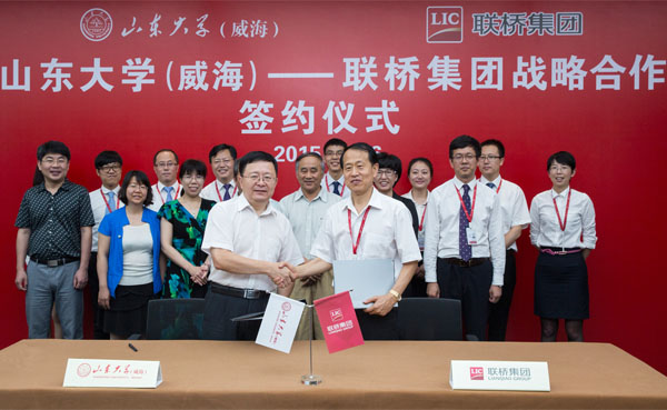 2015年7月16日,聯(lián)橋集團與山東大學(xué)(威海)戰(zhàn)略合作簽約儀式在聯(lián)橋集團舉行。山東大學(xué)(威海)黨委副書記趙玉璞和聯(lián)橋集團黨委書記、董事長慕镕鍵代表雙方簽署了戰(zhàn)略合作協(xié)議。全國政協(xié)常委、中國社會科學(xué)院學(xué)部委員、山東大學(xué)東北亞研究中心理事長張?zhí)N嶺教授、山東大學(xué)(威海)合作發(fā)展處副處長劉曉軍、山東大學(xué)(威海)科研處副處長吳玉閣,聯(lián)橋集團副總經(jīng)理于福杰、副總經(jīng)理慕雙舉、聯(lián)橋新材料副總經(jīng)理李曉妹等領(lǐng)導(dǎo)出席儀式,簽約儀式由聯(lián)橋集團黨委副書記宋威麗主持。