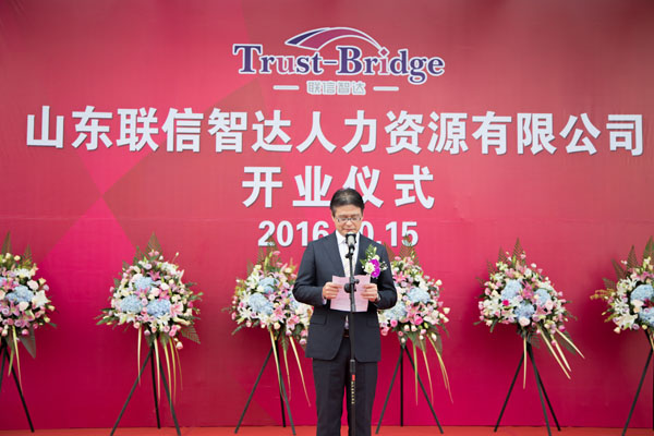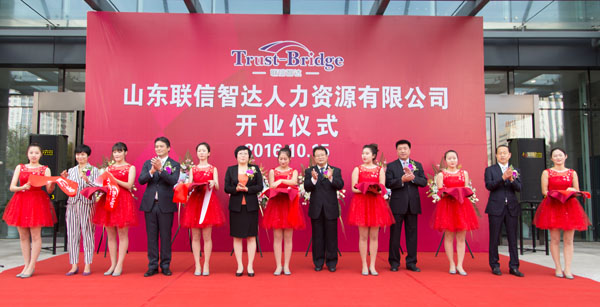 2016年10月15日上午8:30,由威海聯(lián)橋集團(tuán)與日本株式會(huì)社Trust-Tech共同出資成立的山東省首家中外合資人力資源公司—山東聯(lián)信智達(dá)人力資源有限公司開業(yè)儀式隆重舉行。人社部勞動(dòng)爭(zhēng)議研究室主任李天國(guó)、威海市人社局局長(zhǎng)王子明、威海市商務(wù)局副局長(zhǎng)劉秀景,高區(qū)黨工委副書記、管委常務(wù)副主任喬軍,聯(lián)橋集團(tuán)董事長(zhǎng)慕镕鍵、日本株式會(huì)社Trust-Tech社長(zhǎng)西田穰等領(lǐng)導(dǎo)以及聯(lián)橋集團(tuán)員工、事業(yè)合作伙伴、媒體記者等共計(jì)200余人參加了開業(yè)儀式。山東聯(lián)信智達(dá)人力資源有限公司總經(jīng)理梁瀟尹主持開業(yè)儀式。
