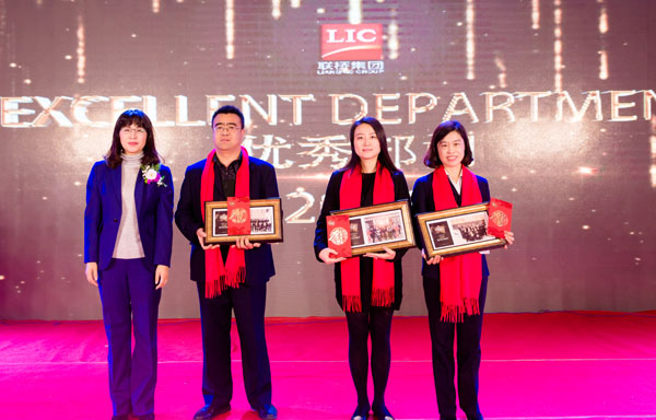 年會(huì)第一項(xiàng),由集團(tuán)公司董事慕衛(wèi)波宣讀表彰先進(jìn)決定,莊嚴(yán)隆重的頒獎(jiǎng)典禮正式開場(chǎng)。雄壯渾厚的音樂(lè)回蕩在會(huì)場(chǎng)大廳,震撼人心;鏗鏘有力、滿含深情的頒獎(jiǎng)詞,高度凝練呈現(xiàn)了2016年度“卓越貢獻(xiàn)獎(jiǎng)”、“明星部門”、“先進(jìn)部門”、“優(yōu)秀部門”、“發(fā)展部門”等獲獎(jiǎng)部門的閃光點(diǎn);閃耀著金屬色光芒的頒獎(jiǎng)畫面,引起強(qiáng)烈的視覺(jué)沖擊,將榮耀盡顯其中。先進(jìn)個(gè)人身披紅圍巾,精神抖擻,喜氣洋洋地依次上臺(tái)領(lǐng)獎(jiǎng),集團(tuán)領(lǐng)導(dǎo)班子集體頒獎(jiǎng)。骨干部門與優(yōu)秀員工,支撐了公司各個(gè)事業(yè)版塊的發(fā)展,代表著聯(lián)橋人的艱辛和擔(dān)當(dāng),折射出聯(lián)橋人的責(zé)任和力量。