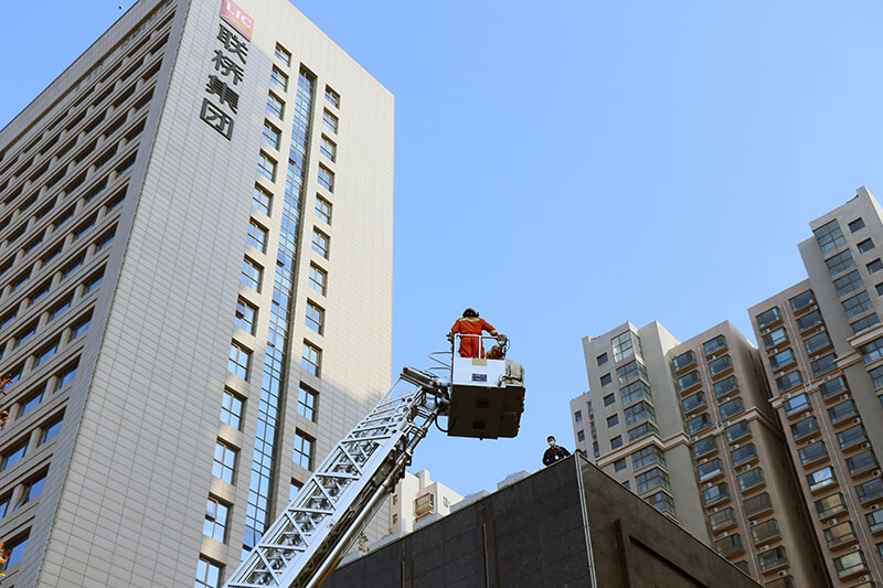 當(dāng)天15:00,聯(lián)橋集團(tuán)運(yùn)營總監(jiān)、消防疏散演練總指揮劉旭波一聲令下,演練正式拉開帷幕。警報(bào)聲響起,全體員工在各樓層安全員引導(dǎo)下迅速有序疏散到安全地帶,并進(jìn)行點(diǎn)名,與此同時(shí)消防車呼嘯而來,利用云梯消防車營救避難平臺(tái)被困人員,隨后,消防員成功撲滅“火災(zāi)”。
