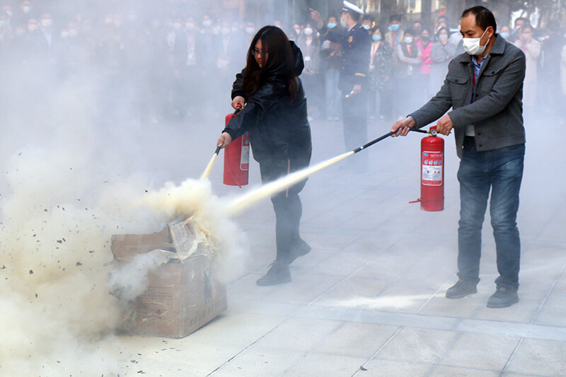 鄭巍參謀特別對(duì)滅火器的使用方法、種類、撲救對(duì)象和注意事項(xiàng)作了詳細(xì)的說明,對(duì)室內(nèi)消火栓、室外消火栓使用和維護(hù)以及應(yīng)急指示標(biāo)志進(jìn)行現(xiàn)場講解和體驗(yàn),并對(duì)參訓(xùn)人員提出的問題進(jìn)行了一一解答。隨后,參加培訓(xùn)的員工代表紛紛上前現(xiàn)場學(xué)習(xí),親身體驗(yàn)使用滅火器滅火。