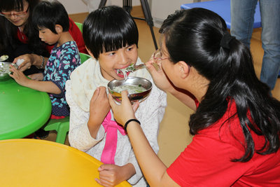 江院長(zhǎng)給志愿者們介紹了福利院的概況,目前福利院共收留孤兒、棄嬰、棄兒一百多名。志愿者們參觀了康復(fù)中心,與醫(yī)護(hù)人員共同為腦癱和智障患兒進(jìn)行康復(fù)和矯形訓(xùn)練。然后到食堂給年幼的孩子喂食進(jìn)餐,陪孩子們到游戲室進(jìn)行鍛煉。在這里,志愿者們看望了很多招人愛(ài)、惹人憐的孩子,經(jīng)工作人員介紹才知道他們或者聽(tīng)不到、或者手有缺陷、或者平衡力不行,很多都有缺陷,但是他們看到各位阿姨的到來(lái),都分外活躍,高興地到處擁抱各位阿姨,更讓志愿者們體會(huì)到了深深的責(zé)任。