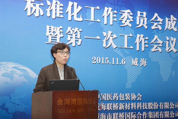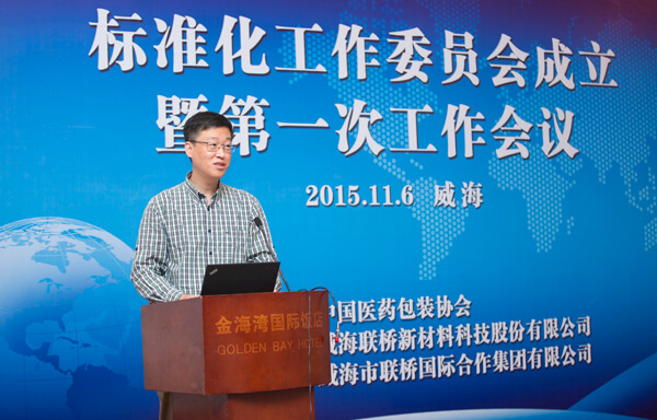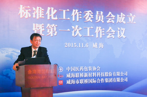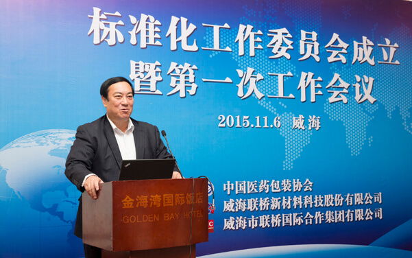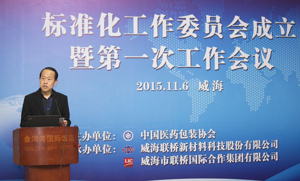 2015年11月6日,中國醫(yī)藥包裝協(xié)會標準化工作委員會成立暨第一次工作會議在金海灣國際飯店金海灣廳召開。會議由中國醫(yī)藥包裝協(xié)會主辦,威海市聯(lián)橋國際合作集團有限公司、威海聯(lián)橋新材料科技股份有限公司承辦。國家藥典委員會綜合處處長洪小栩、中國醫(yī)藥包裝協(xié)會副會長紀煒、秘書長蔡弘等相關領導、專家,威海聯(lián)橋集團董事長慕镕鍵、威海聯(lián)橋新材料科技股份有限公司總經(jīng)理慕衛(wèi)波等共計120余人參加會議。中國醫(yī)藥包裝協(xié)會副會長紀煒主持會議。威海高技術產(chǎn)業(yè)開發(fā)區(qū)黨工委副書記王剛出席會議。